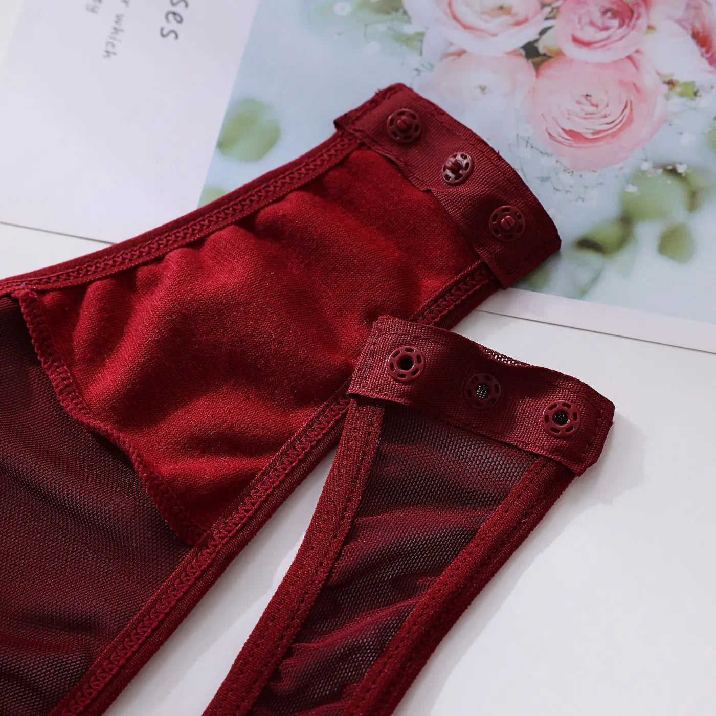 MIRABELLE Tight Fitting Lace Bodysuit See Through Sexy Lingerie Body With Gloves Garter Outfit Sissy Crotchless Mesh Top